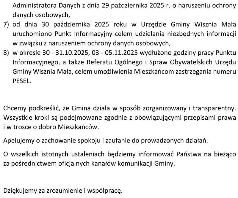 Komunikat z dnia 29.10.2025 roku o naruszeniu ochrony danych osobowych