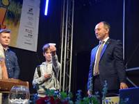 Dożynkowym. Starosta dożynek Stanisław Sanecki oraz starościna Dorota Sanecka przekazali Wójtowi Gminy Wisznia Mała Jakubowi Bronowickiemu bochen
